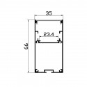 Aufgrund seiner Abmessungen kann dieses Profil ein oder zwei Streifen im Inneren aufnehmen, solange die maximale Breite von 23 mm nicht überschritten wird. Es kann auch Steckerkits oder ultraschlanke Serientransformatoren aufnehmen.