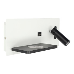 Wandleuchte aus Aluminium mit 3 W Leselicht und 7 W Hintergrundbeleuchtung, beide in warmem Licht.