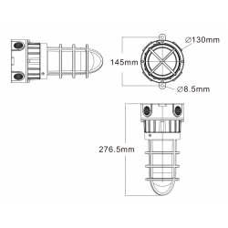 - Gehäuse aus kupferfreiem Aluminium und Schirm aus gehärtetem Glas, mit Schutzgitter und Schlagschutz IK08.
