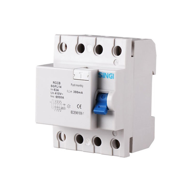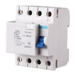Vier-Pol-Differentialschalter, 300mA, in 40 Ampere erhältlich. Besonders geeignet für den industriellen Gebrauch.