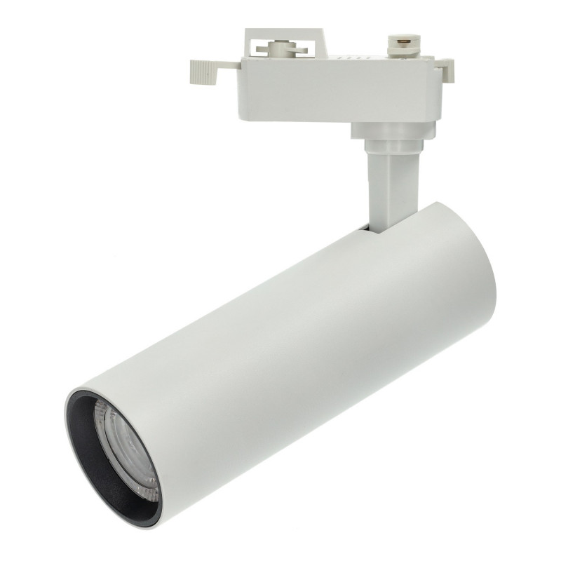 30W verstellbarer Schienen-LED-Strahler, in weißem Aluminium, für den Einbau in einphasige Schienen.