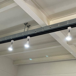 Knickboden für Lampen mit GU10-Buchse. Dieses Zubehör basiert auf der Montage auf Monphasenschienen und ist damit eine wirtschaftliche und vielseitige Alternative zu herkömmlichen Schienenlampen.