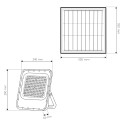 Die Abmessungen des Strahlers betragen 28,5 x 25 x 25 x 5 cm, während das Solarpanel eine Größe von 37 x 36 x 2,5 cm hat. Sein kompaktes und leichtes Design ermöglicht eine schnelle und einfache Installation auf jeder Oberfläche. Tagsüber bleibt der Projektor ausgeschaltet, während er seinen Akku auflädt. Bei Einbruch der Dunkelheit schaltet sich das Licht automatisch ein. Darüber hinaus verfügt er über eine Infrarot-Fernbedienung, mit der Sie das Ein- und Ausschalten, die Helligkeit und die Zeitschaltuhr steuern können.