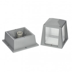 Aluminium-Überwand-Leuchte mit Sockel für eine E27-Buchse.