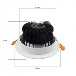 12W Orientable Led Downlight, mit weißem Rahmen, 1100 Lumen.