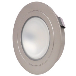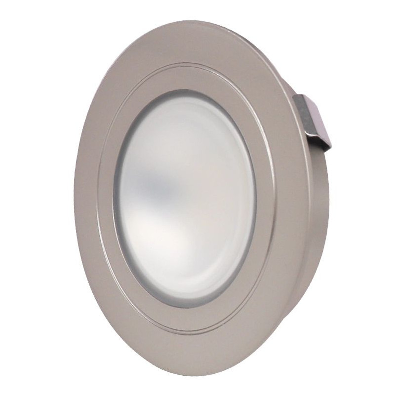 2.5W Einbau-LED-Downlight. Aluminiumgehäuse mit silbernem Finish. Der Lichtstrahl kann in die gewünschte Richtung ausgerichtet werden.