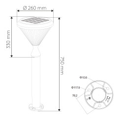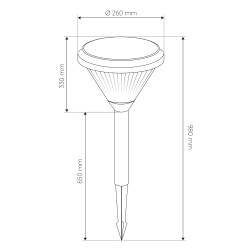 Solar Gartenlampe, 75cm hoch, aus Aluminiumgehäuse, mit 6W Leistung.