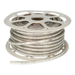 LED strip220V, 12 Watts metre, IP65 outdoor use, high brightness, 60 LEDs per metre, light available in red, green and blue. Great light perception and improved light distribution.