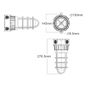 The lower part consists of a round junction box with four metric M20 x 1.5 threaded conduits. One of them is fitted with a cable gland and an 80cm long electrical cable. The remaining three are closed with hexagonal plugs and ATEX M20 cable glands must be purchased if they are to be used.