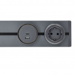 Rail for surface mounting, metallic grey colour. Allows easy coupling and uncoupling of sockets of all types, as well as moving the sockets along the entire length of the rail. This makes it ideal for locations where the number and/or type of sockets available needs to be varied from time to time.