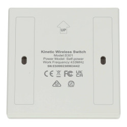 Two-button wireless switch, self-powered, works without batteries or cables.