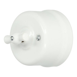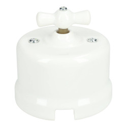 Porcelain switch available in white, black and ivory with dimensions of 65 x 60 mm.