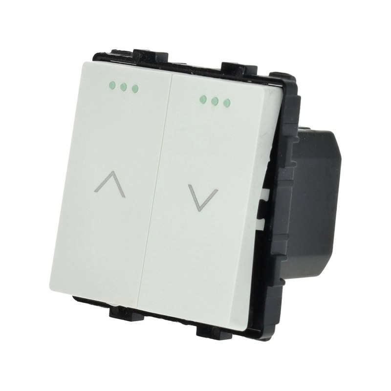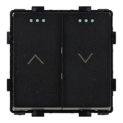 Two-key switch for shutter control, available in white or black. By pressing and holding down a button, the shutter will go up or down until the button is pressed or the limit switch is reached.