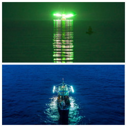 320W LED spotlight, available in green and blue light, ideal for use on fishing boats.