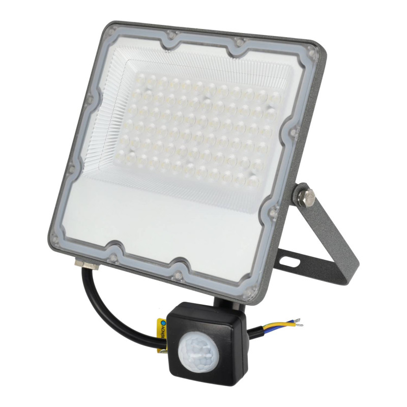 50W LED spotlight with motion detector, cool white light, 5000 lumens.