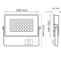 When the floodlight detects movement from an object approaching it in a 160º angle, between 1 to 10 metros, it switches on at the maximum power. Immediate switch-on, Adjustable working time.