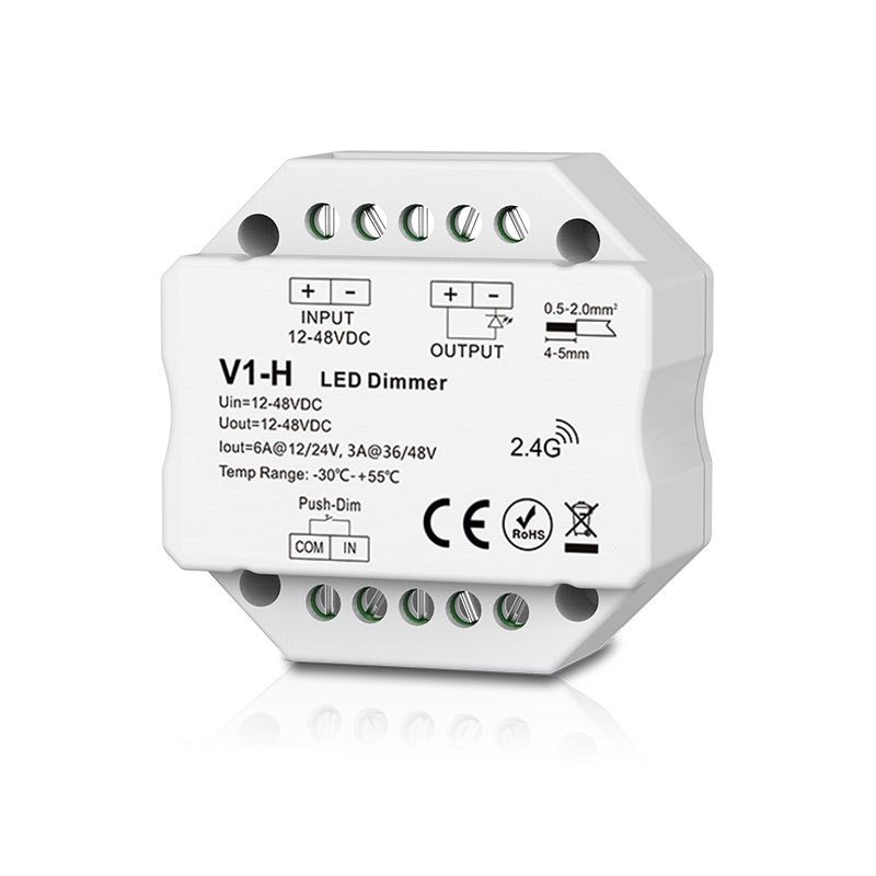 Can be controlled via pushbuttons or with the RF Remote Control for LED Dimmer