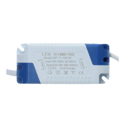 This transformer conducts an adjustable voltage and current to LED downlights. Its plastic case protects it against potential damage caused by water or dust.