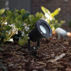 The outdoor LED spotlight, designed in aluminium and finished in black, is a perfect product for lighting outdoor spaces due to its IP65 protection rating (protection against dust and water jets). Due to its tilting structure, it allows the orientation of the light point in the desired direction, which makes it an ideal light source for residential use in gardens, terraces, flower pots, as well as in larger spaces such as parks, paths or patios.
