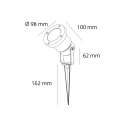 Its installation is very simple, and there are two options: (1) fixing it to a surface by means of its tilting base or (2) sticking the spike directly into the ground. Finally, it should be connected to the mains.