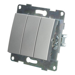 Switch key 3 gang 1 way, avaliable in white or silver color.