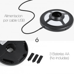 This luminaire is powered by 3 AA batteries (not included). Rechargeable batteries can be used for added convenience (product includes USB cable for charging).