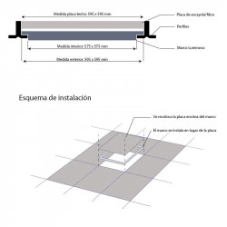60x60 cm LED frame panel suitable for placement in technical ceiling, allowing to keep the plaster plates.