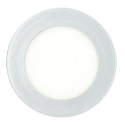 Extra-slim recessed 6W round LED downlight with SILVER-COLOURED frame, with cool white light and warm white light, 540 lumens.