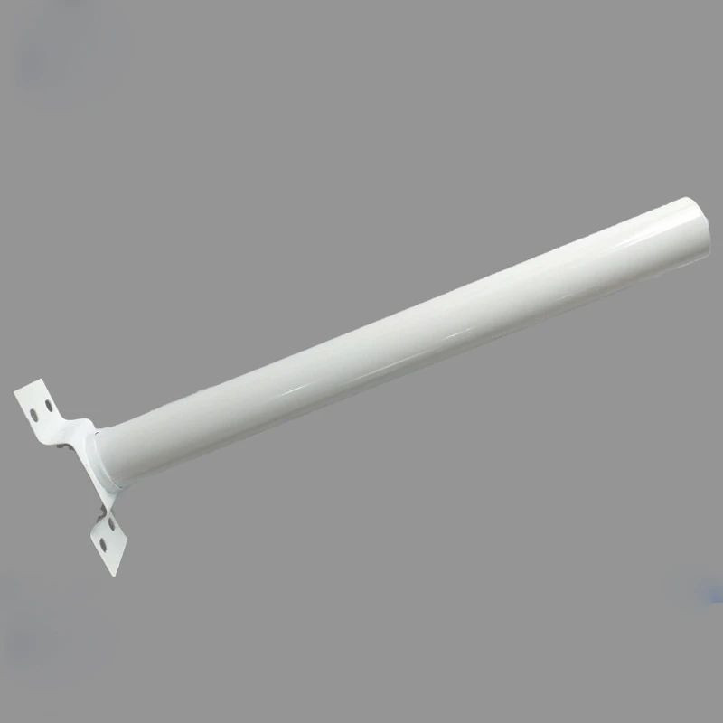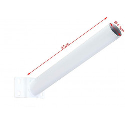 Metallic bracket for installing street lamps on the wall, finished in a white colour.