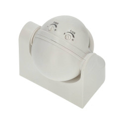 Motion sensor for surface installation. Allows you to adjust the power-on time, detection range and light sensitivity.