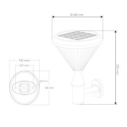 Solar wall lamp in aluminium, with 6W power.