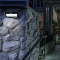 It has a PIR detector that turns ON at 100% when it detects movement at a distance between 3 and 5 meters.