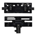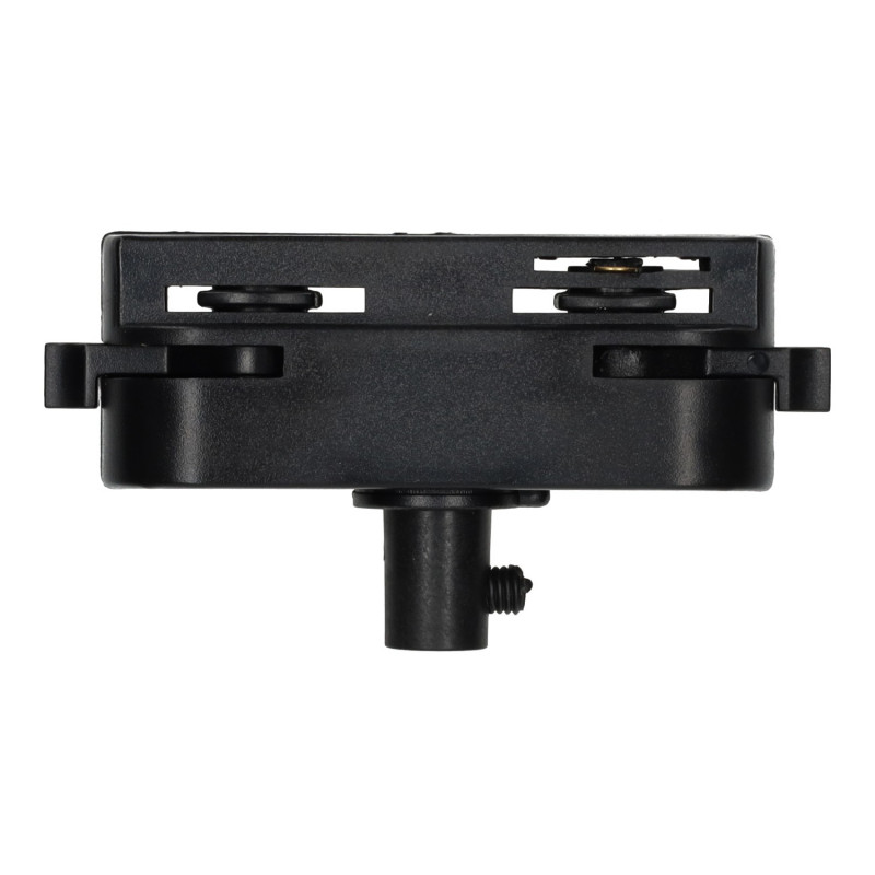 Adaptador de carril monofásico en color negro. Está diseñado en ABS con las medidas 80 x 27 x 35 mm. Es compatible con todos los carriles monofásicos de nuestro catálogo.