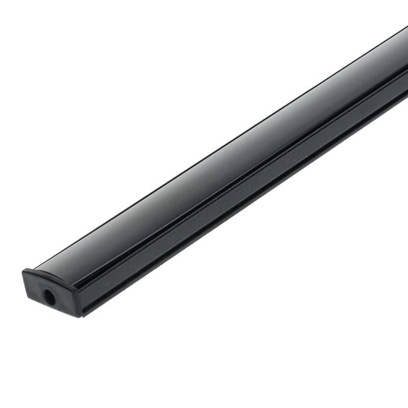 Perfil rectangular de aluminio, en color negro, con cubierta en PVC, que se emplea para ocultar y proteger las tiras led de 2 m de hasta 12 mm de ancho en su interior. Este tipo de perfil se utiliza en instalaciones en interior para ocultar y proteger las tiras led, pudiéndose utilizar tanto para tiras led rígidas como flexibles. Al disponer de una cubierta opaca se reduce la intensidad lumínica y el deslumbramiento, creando ambientes acogedores. Los perfiles se emplean tanto para tiras led rígidas como flexibles, pudiéndose utilizar para diferentes aplicaciones.
