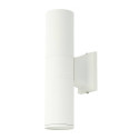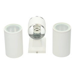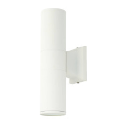 Aplique de aluminio con base para dos bombillas de casquillo G10 con acabado en color blanco. Es una iluminaria ideal para instalar en hogares, fachadas, jardines, terrazas etc.
