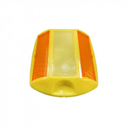 Baliza de carretera (también llamada ojo de gato) con bandas reflectoras a ambos lados y una banda fosforescente en la parte superior. La combinación de las bandas reflectoras junto con la banda fosforescente hace que este producto tenga una gran visibilidad en zonas oscuras, sin necesidad de alimentación mediante baterías ni ningún otro elemento electrónico. Es ideal para su uso en carreteras, calles, rotondas, viales privados, jardines, etc.