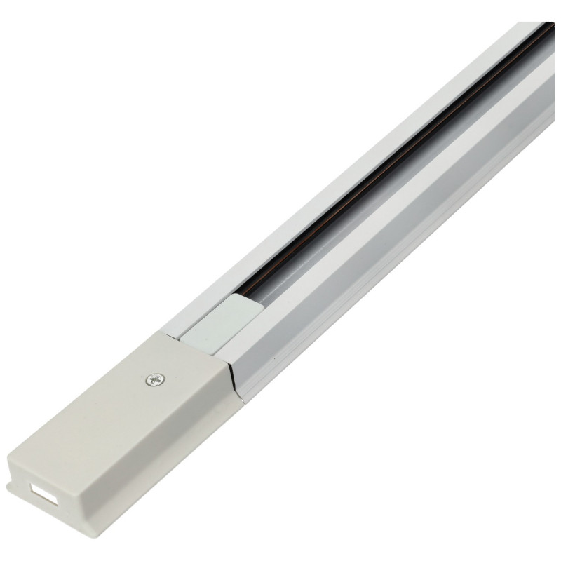 Carril monofásico para focos led de 2 m ensamblable en color blanco ensamblable, diseñado en aluminio con las medidas 40 x 20 x 2000 mm. Se pueden hacer uniones rectas y en ángulo.