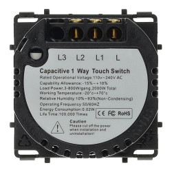 Interruptor táctil doble sencillo de 2000W, disponible en dos colores: blanco y negro. Su placa de cristal templado retroiluminada permite localizar el interruptor fácilmente en la oscuridad. Apto para ser utilizado con iluminación LED, sin provocar parpadeos molestos en las bombillas