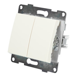 Interruptor doble de un elemento empotrable, disponible en tres colores diferentes: blanco, negro o plata. Es un mecanismo apto para ser utilizado con iluminación LED, sin provocar parpadeos molestos en las bombillas.
