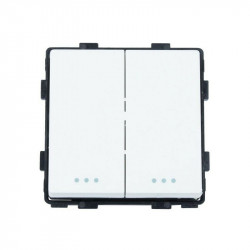 Interruptor doble conmutado de un elemento empotrable, disponible en dos colores: blanco y negro.