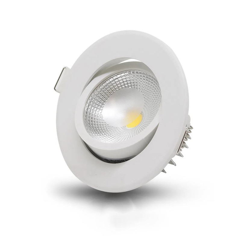 Downlight Led redondo de 5W orientable, con marco en color blanco.