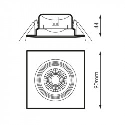 Downlight Led cuadrado de 5W orientable, con marco en color blanco.