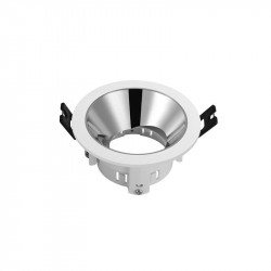Fabricación en policarbonato color blanco con aro interior orientable cromado en color plata o color pólvora.