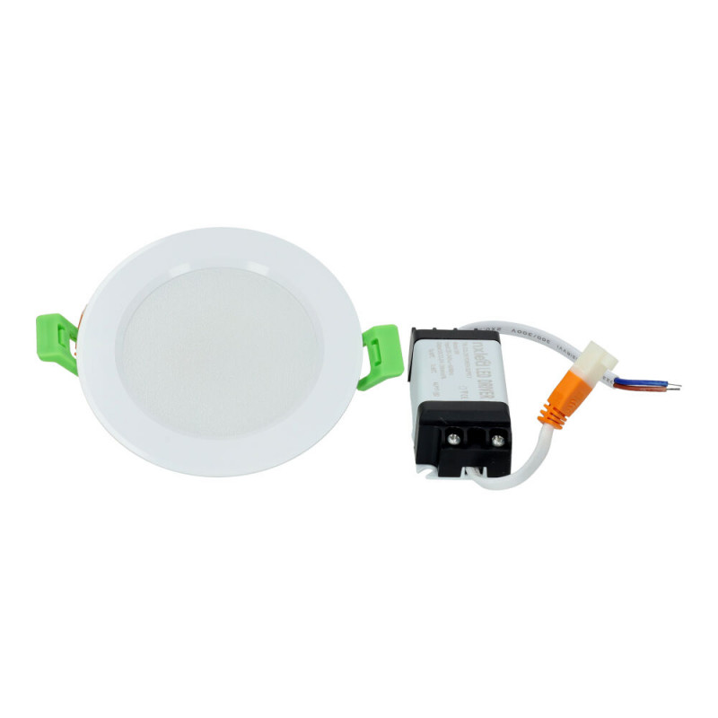 Downlight Led redondo empotrable, de aluminio con marco color blanco.