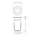 Cuenta con una alta eficacia al consumir 0,2W mediante el LED que integra, representando un consumo por valor de 0,2kWh/1000h, lo que supone una reducción de la cantidad de energía facturada y de emisiones de gases contaminantes a la atmósfera. Soporta un voltaje de entrada de 12V de corriente continua. Está disponible en una temperatura de color: neutra (4000-4500°K). Está diseñado en acero inoxidable con las medidas de Ø 15 x 26 mm.