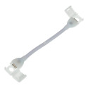 Conexión doble para tiras led 220V RGB de enchufe rápido. Con este conector se pueden unir dos tramos de tira haciendo diferentes curvas y ángulos, permitiendo conseguir una gran versatilidad en cualquier instalación.