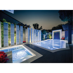 - Mejora la seguridad al iluminar áreas específicas de la piscina.