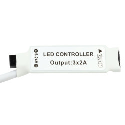 Controlador mini con mando a distancia (infrarrojo). Permite controlar hasta 5 metros de tira led RGB de 12V. Su fácil conexión hace que se ahorre tiempo y dinero en la instalación de las tiras led y su reducido tamaño permite su colocación en cualquier lugar pasando totalmente desapercibido.