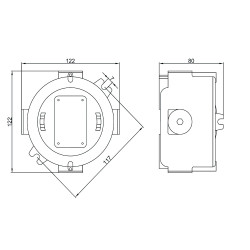 Boîte de jonction ronde pour installation en surface, avec trois conduits filetés métriques M25 x 1,5 (fermés par un bouchon hexagonal, un presse-étoupe M25 doit être acheté pour chaque conduit à utiliser).