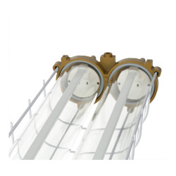 Bouclier scellé ATEX pouvant accueillir deux tubes LED T8 de 120 cm. Avec protection contre les atmosphères explosives.